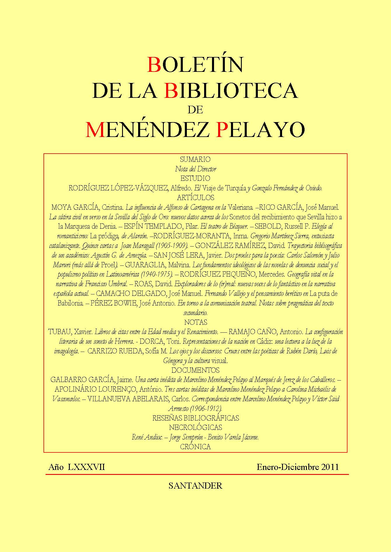 Una carta inédita de Marcelino Menéndez Pelayo al Marqués de Jerez de los Caballeros