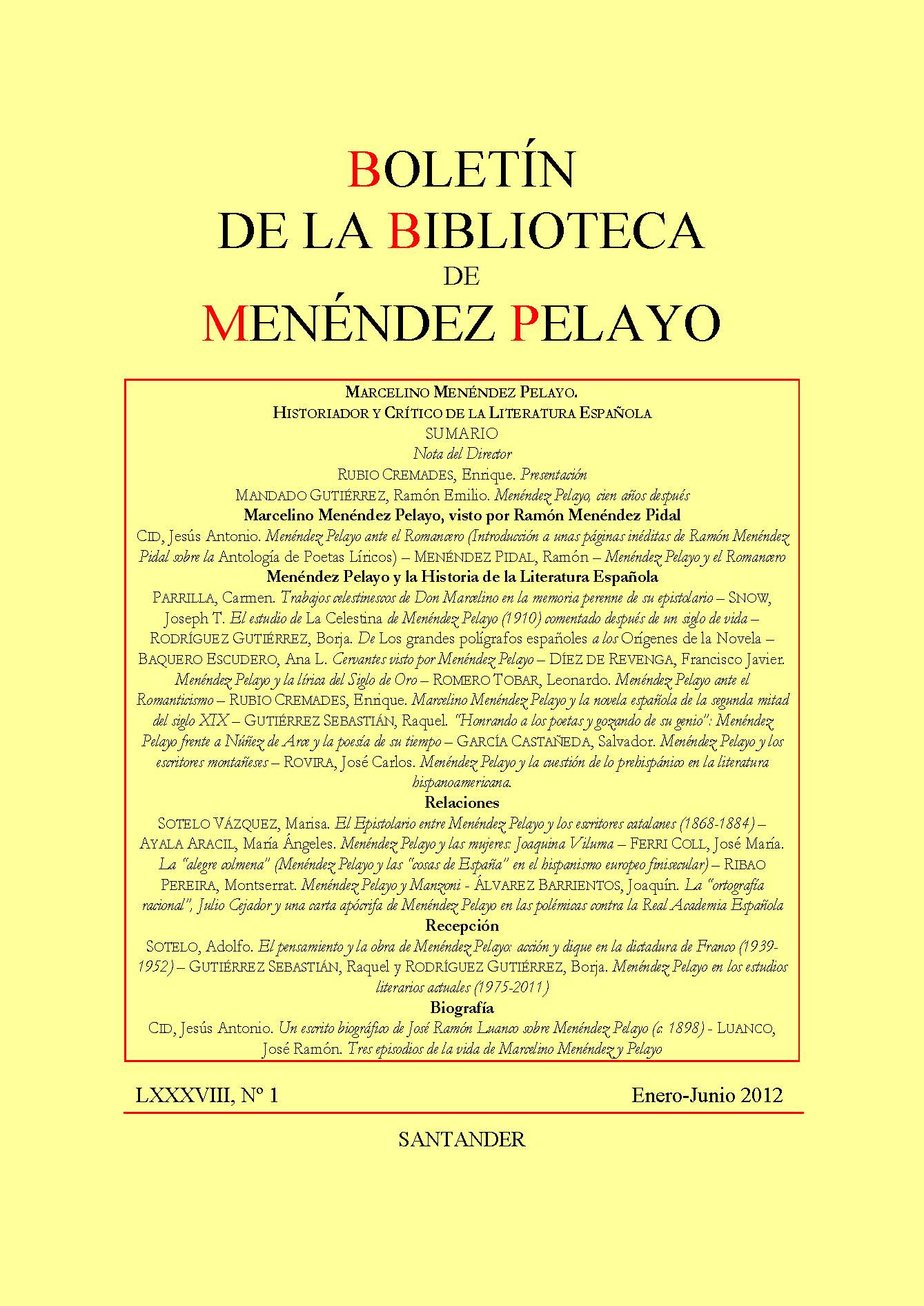 El estudio de "La Celestina" de Menéndez Pelayo (1910) comentado después de un siglo de vida