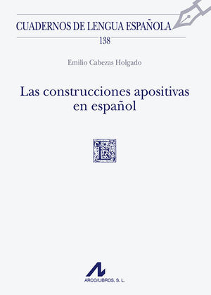 Cabezas Holgado, Emilio. "Las construcciones apositivas en español. Colección Cuadernos de Lengua Española, 138". Madrid, Arco/Libros, 2018. 77 págs.