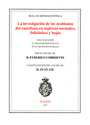 Corriente, Federico, La investigación de los arabismos del castellano en registros normales, folklóricos y bajos, Discurso [...] por [...] F. C. y contestación de [...] Juan Gil, Madrid, RAE, 2018, 7-45 + 49-76.